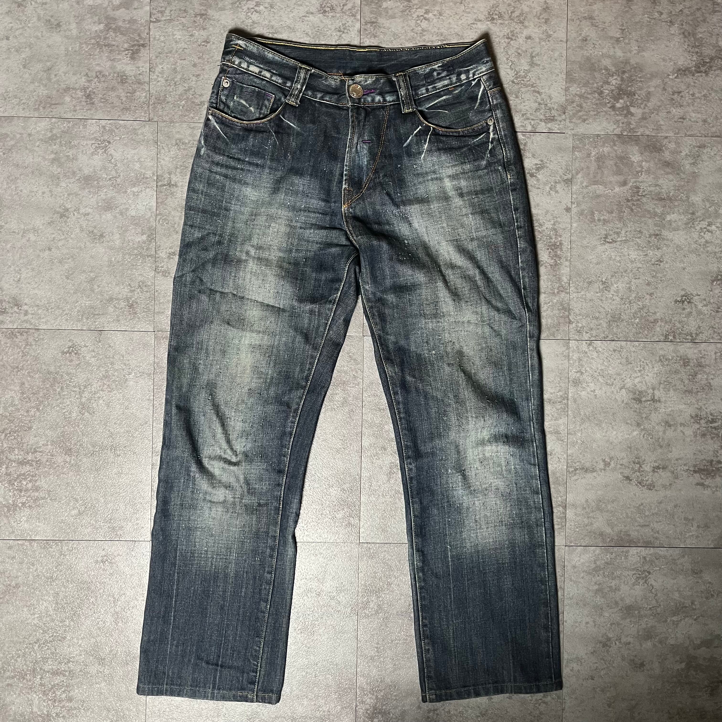 目立った汚れはございませんが、製品の性質上ダメージ加工等ございます。写真にて確認の上、古着ということを念頭にご検討ください。