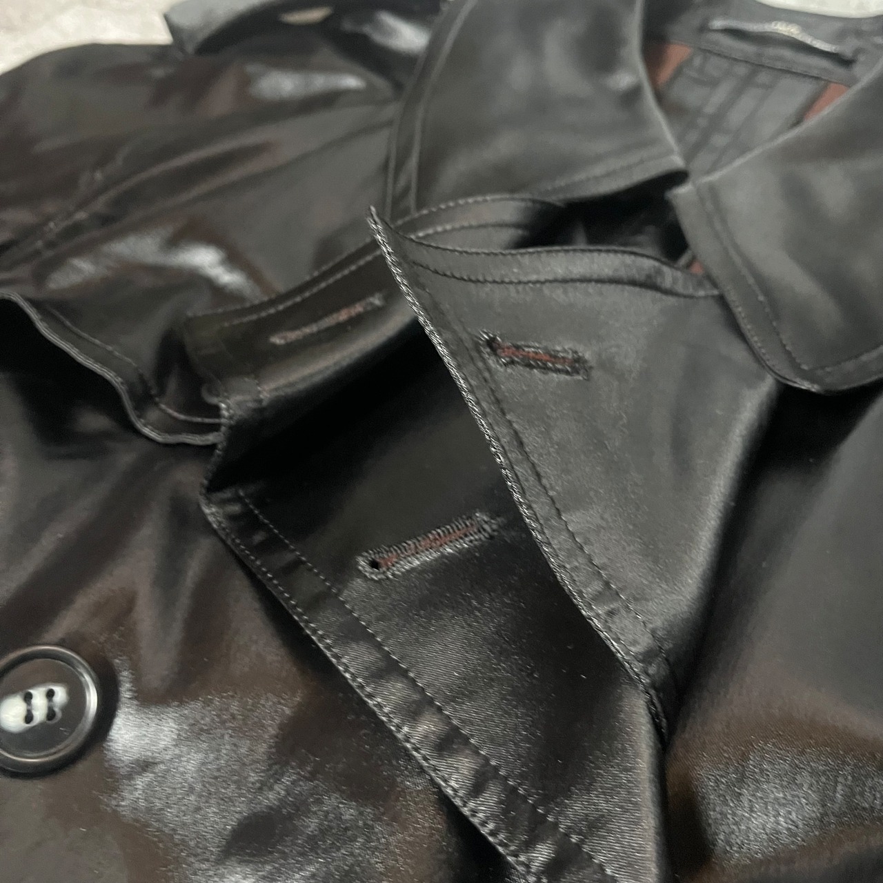 最初期のjunmen、フランス製。フェイクレザー?のナイロンコートです。独特のドレープ感、パターン、生地感、ギミック、どれも凄まじいアイテム。