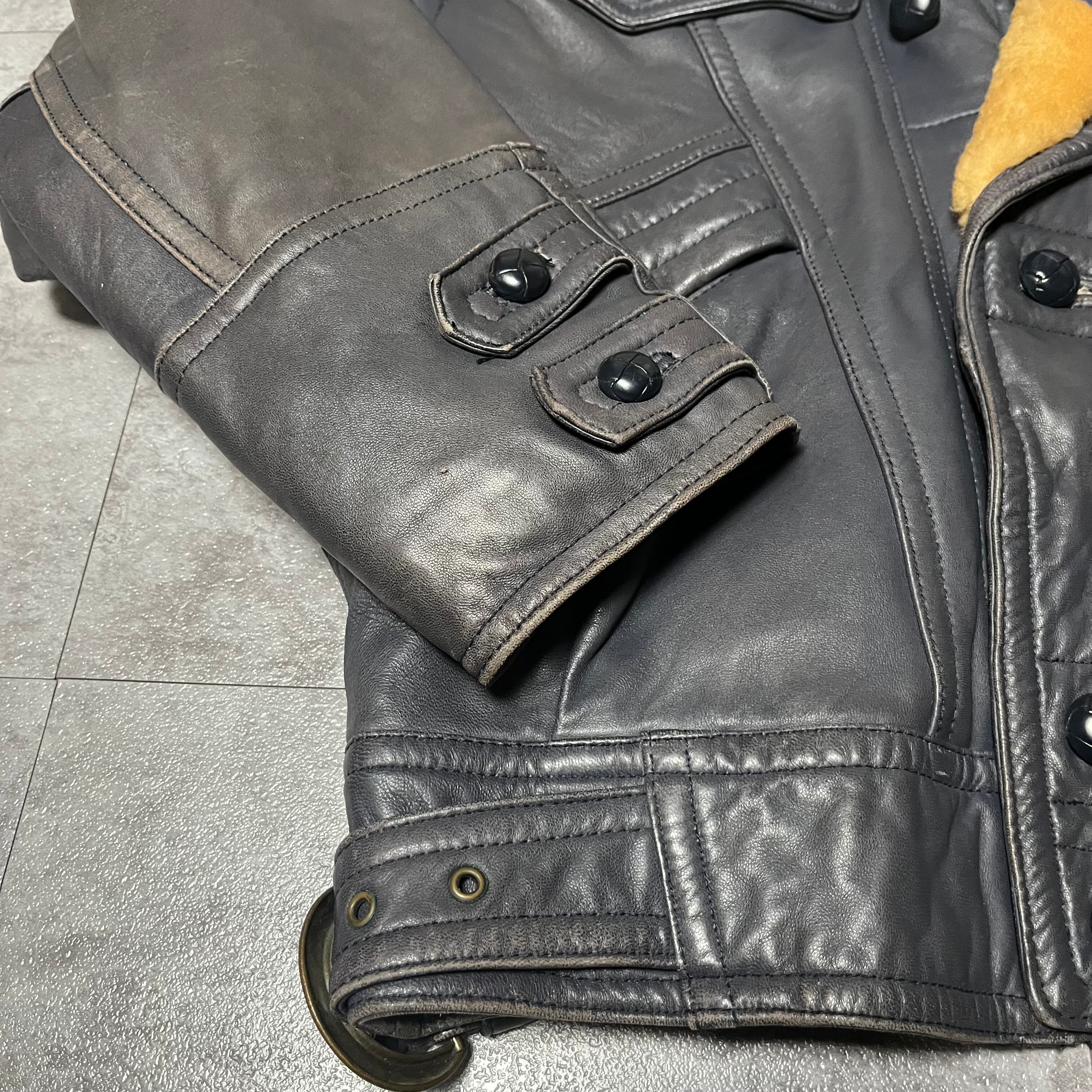 ビンテージのレザーライダースです。ボタンをつける場所を変える事で様々なディティールで楽しむことができます。ファー付きで作りも非常に凝っていて一生の一枚と言っても良いと思います。おすすめです。是非。