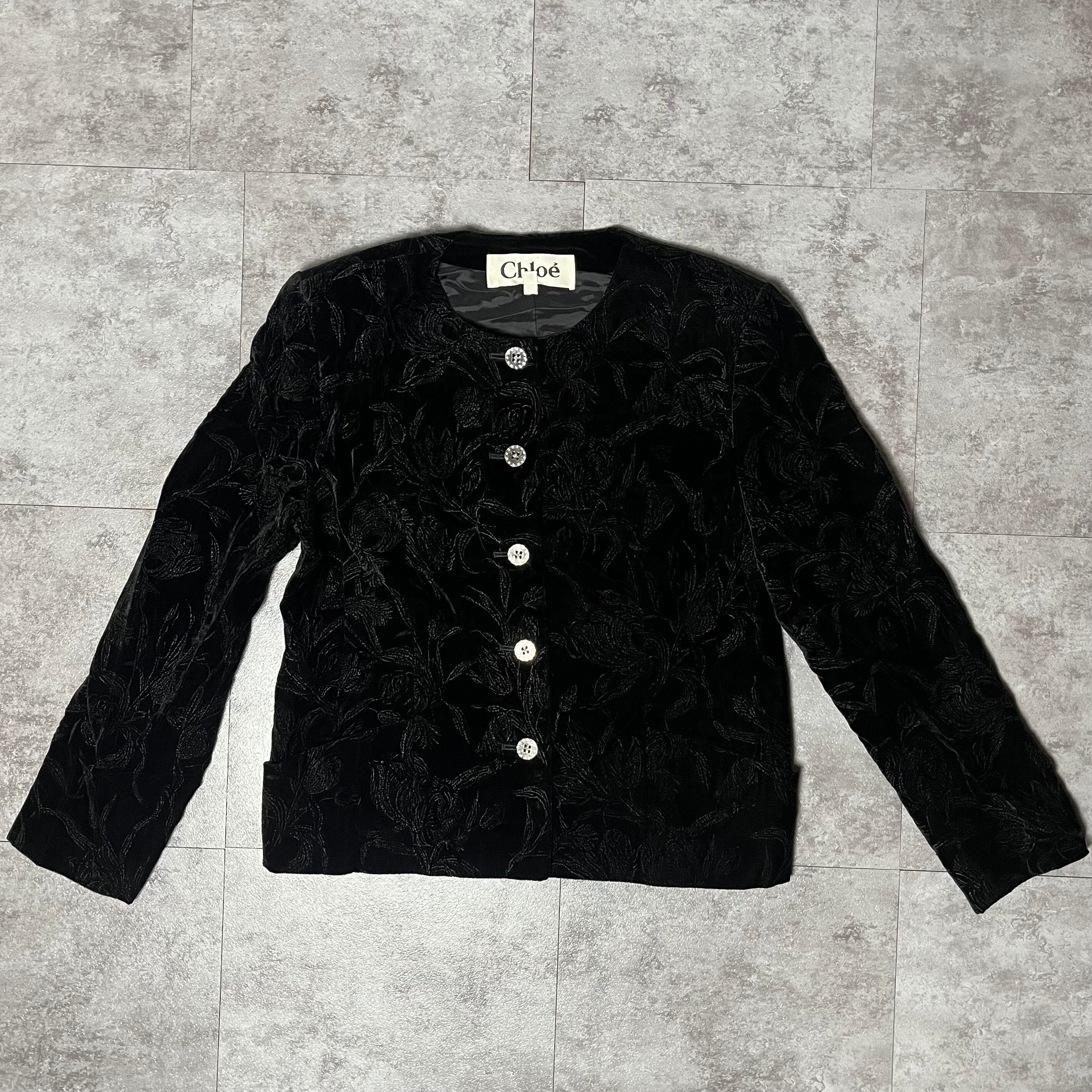 クロエの総柄ベロアジャケットです。vintageらしい風合いと高級感のあるデザインとディティールです。おすすめです。是非。