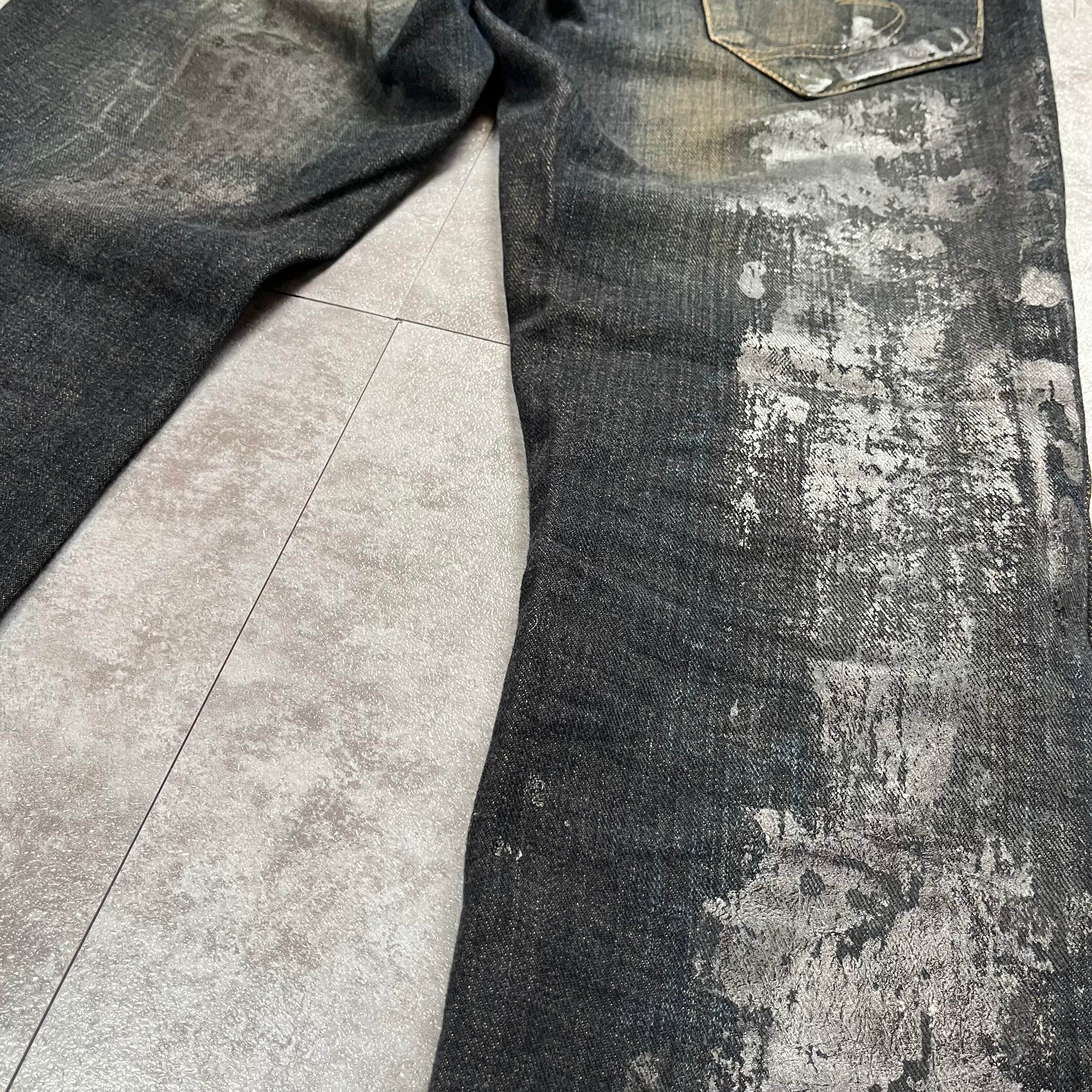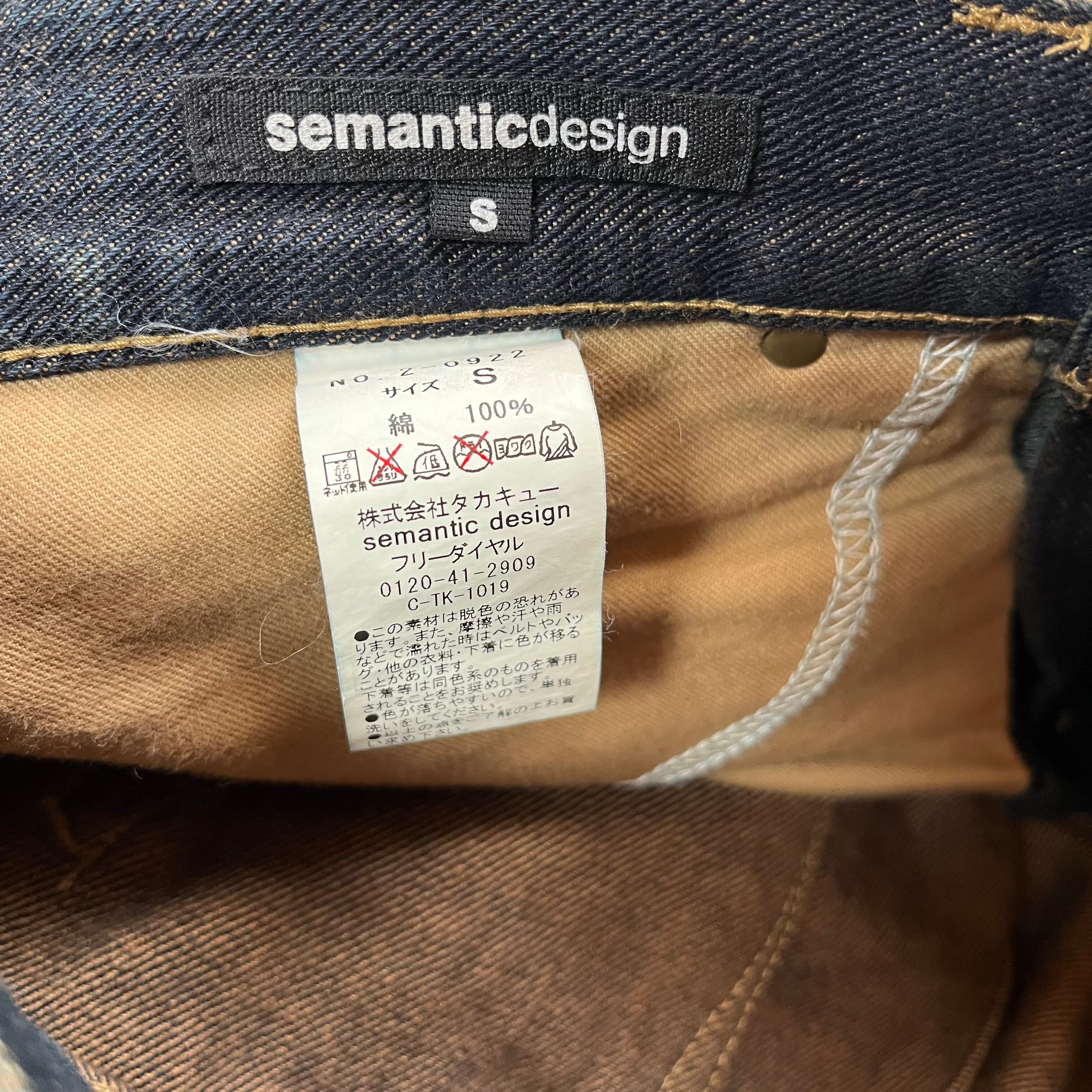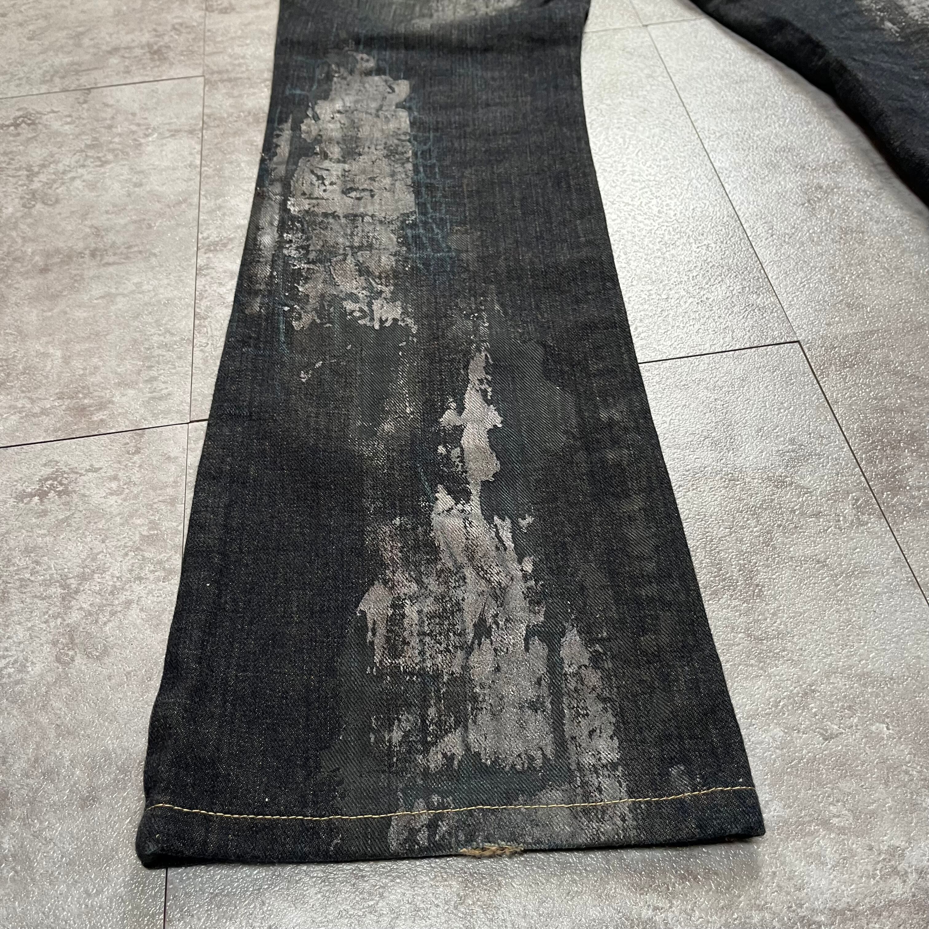 セマンティックデザインのコーティング加工がされたフレアデニムです。良い意味であまりセマンっぽくないデザインなのでお兄系に振り切っていない人でも着用しやすくシンプルにかっこいいパンツです。どちらかといえばLGBのデザインに近いかと思います。